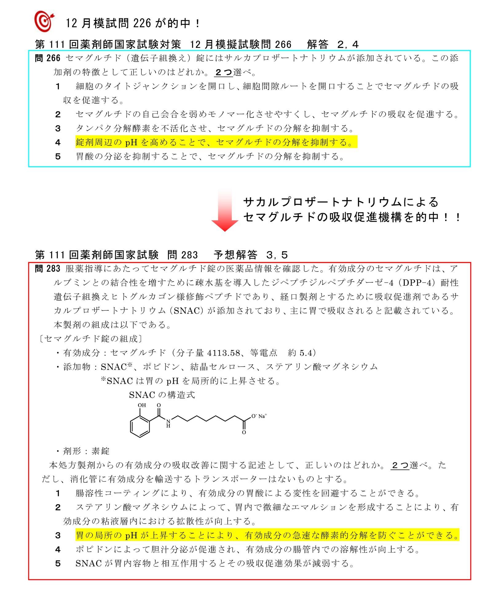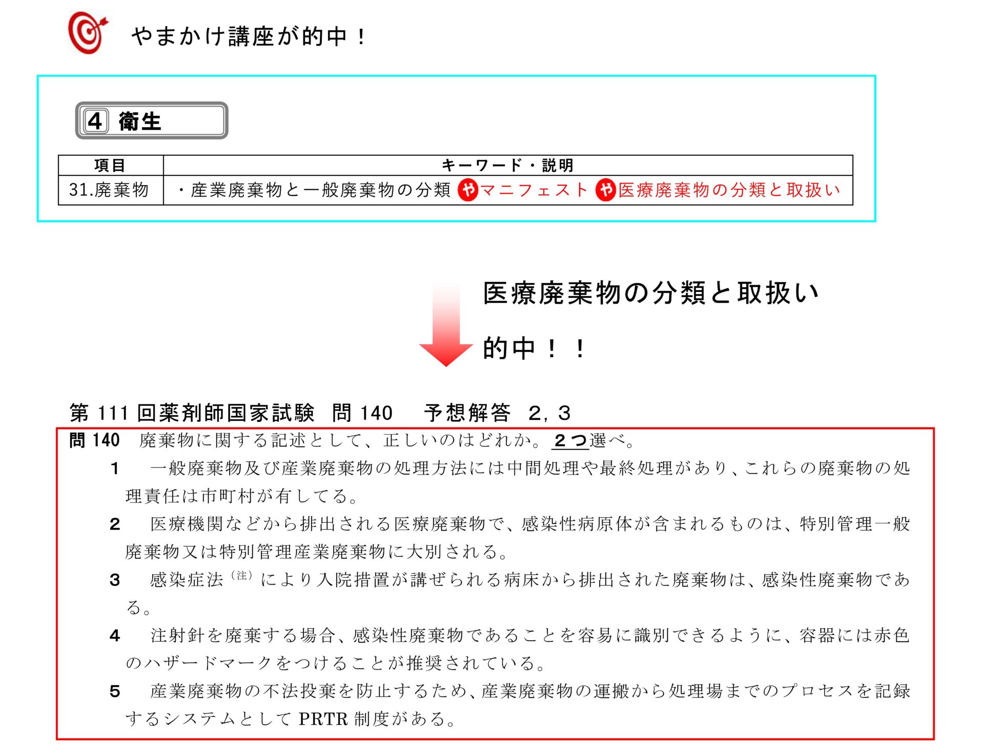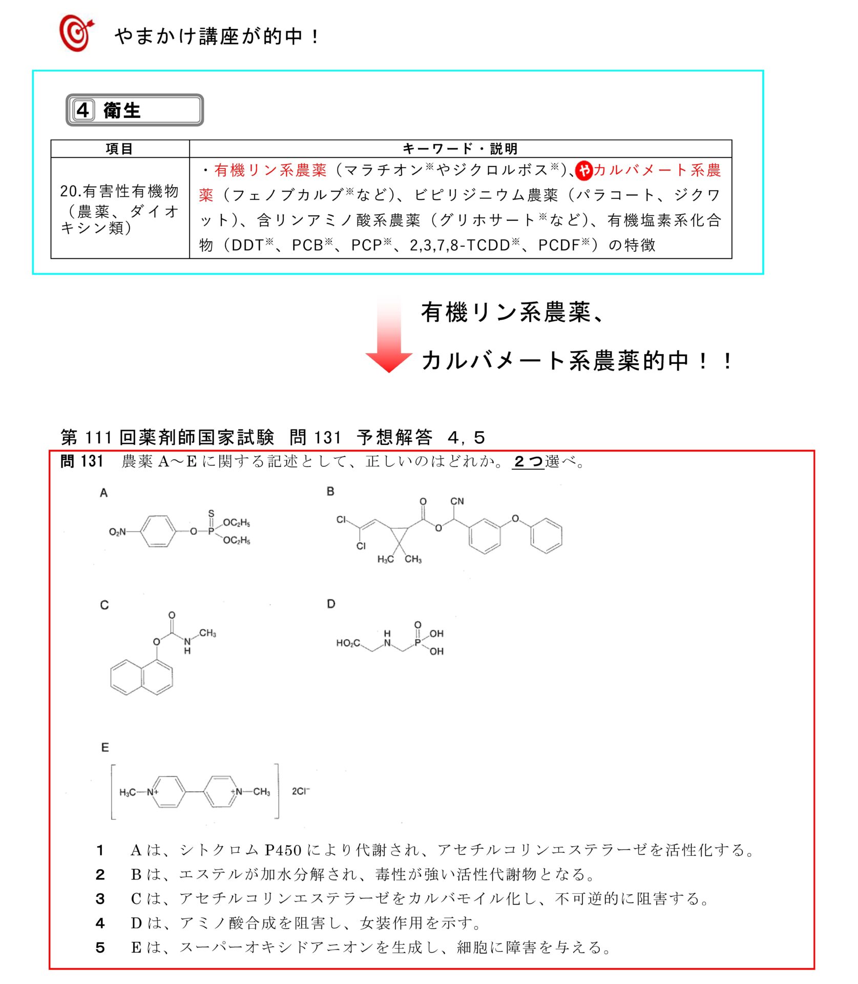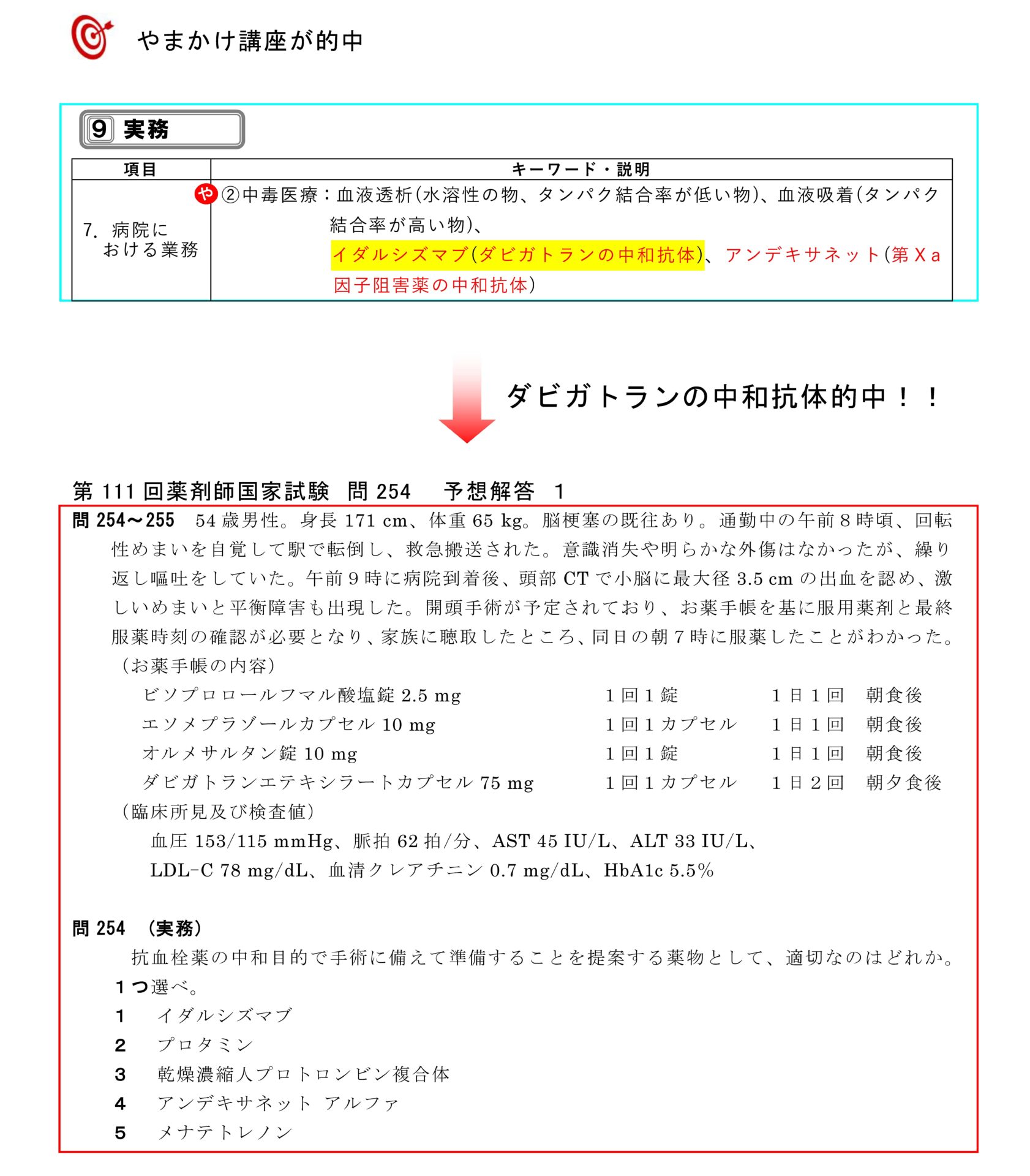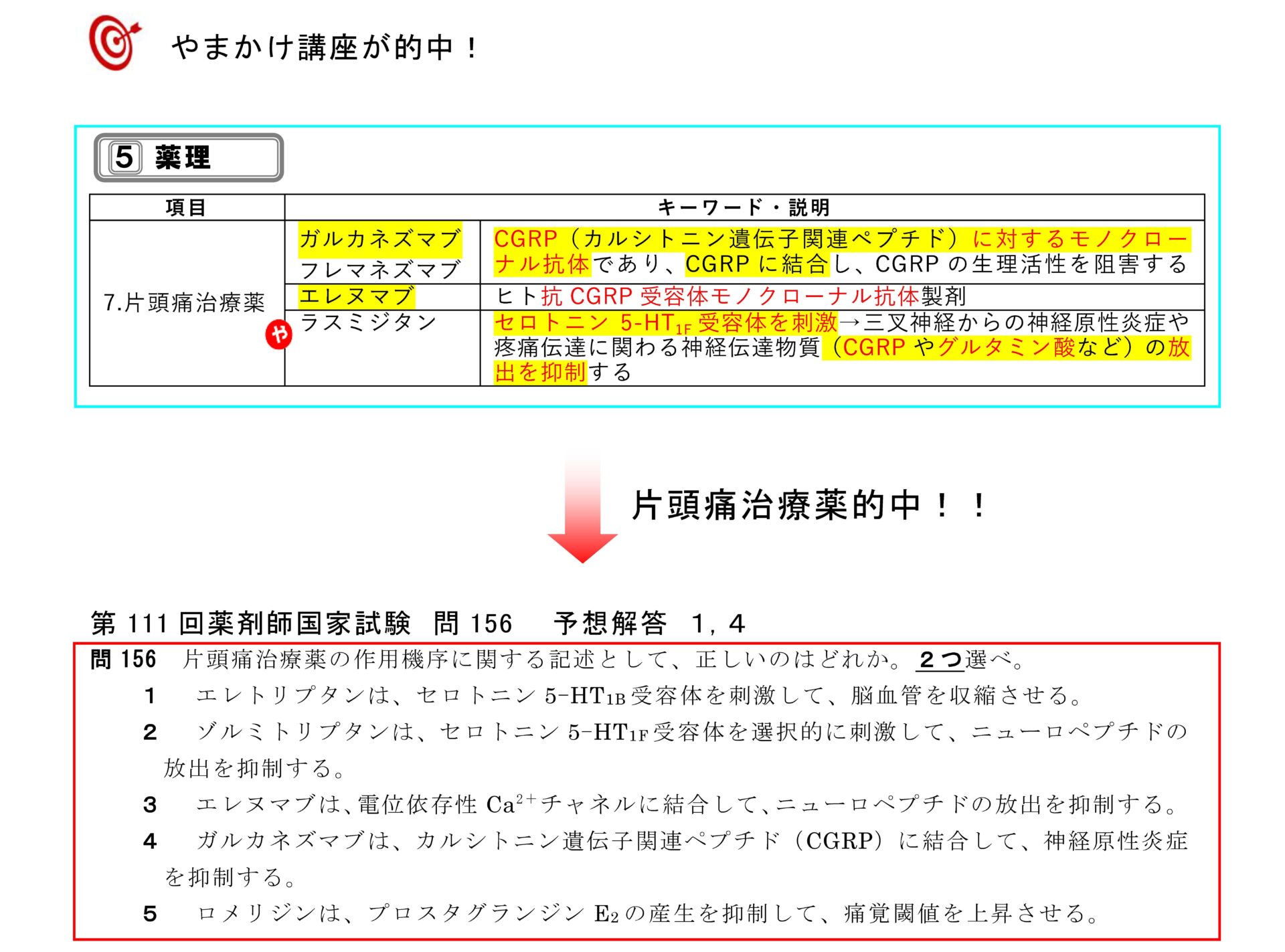第111回薬剤師国家試験において、ファーマプロダクトの