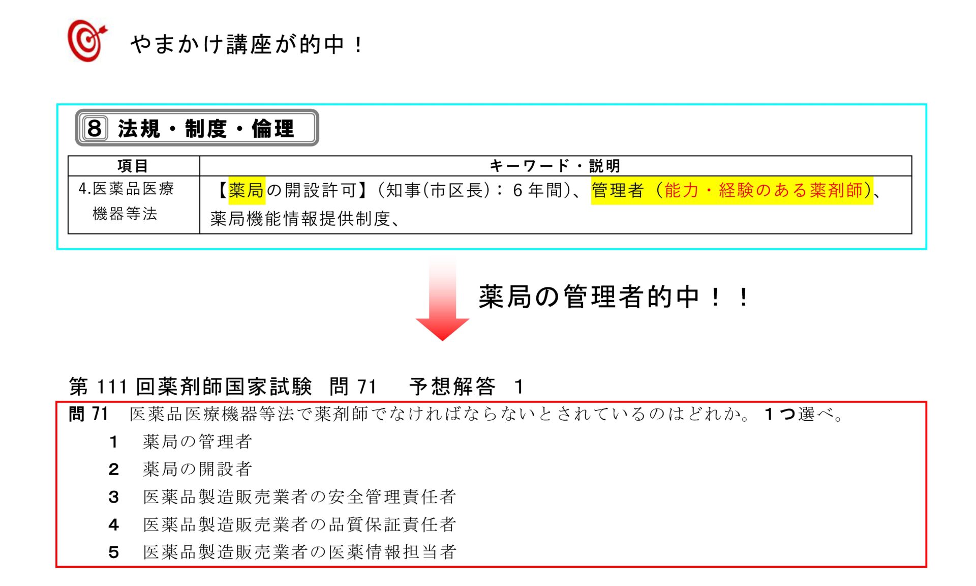「模擬試験」「直前演習」「やまかけ講座」から、