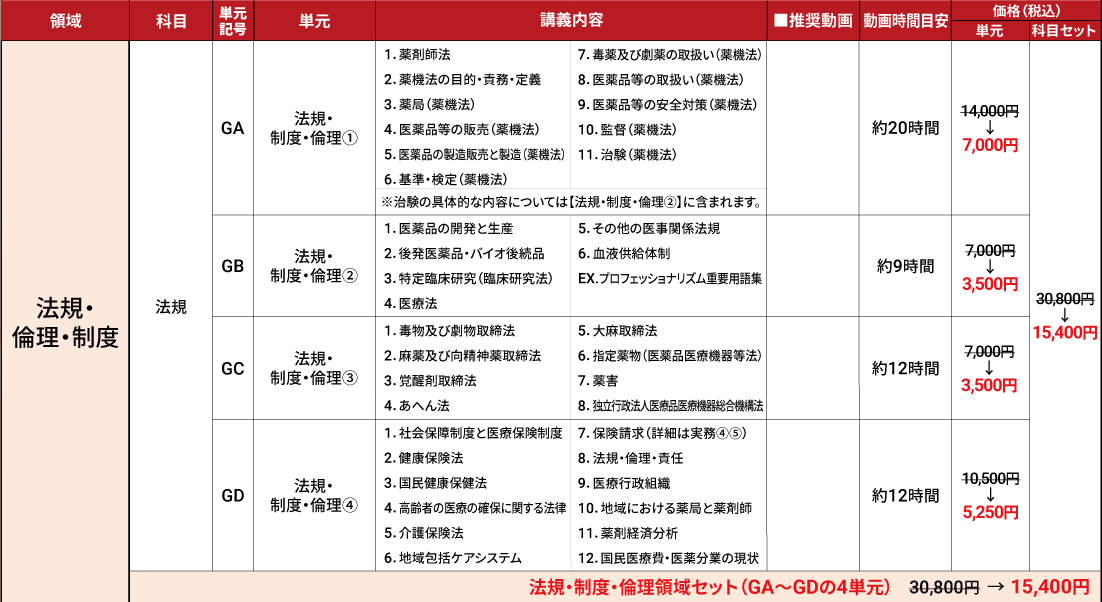 全領域セット(eファーマセレクトの全動画セット) 289,600円 → 144,800円